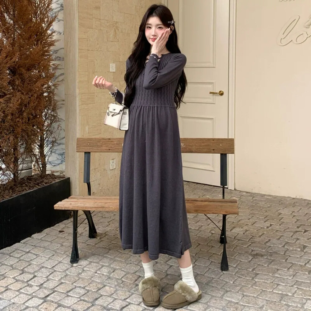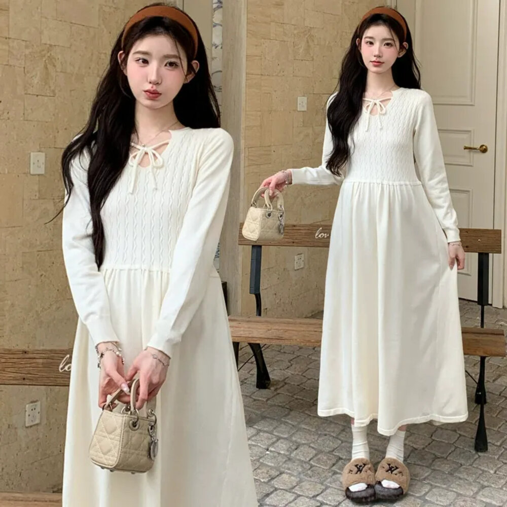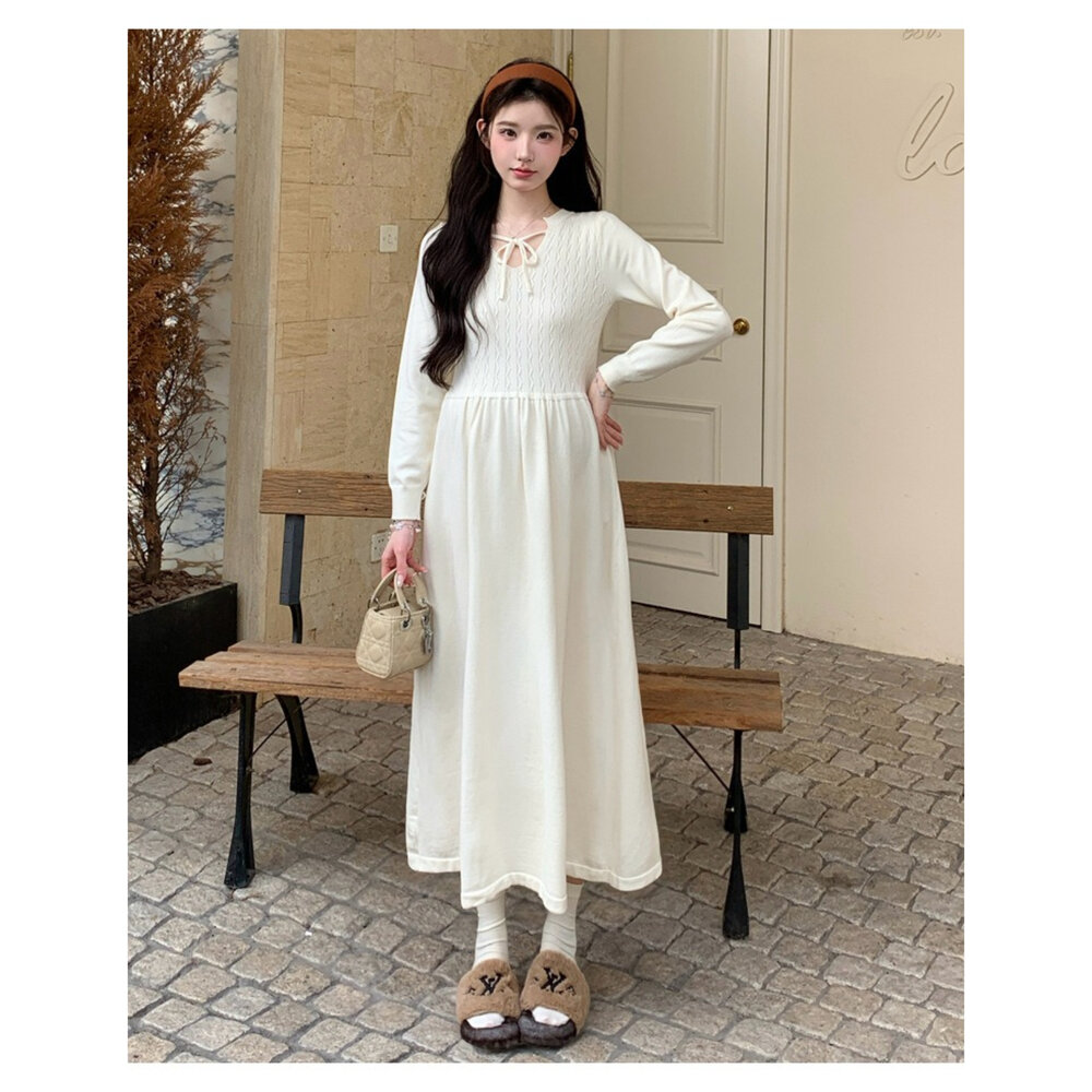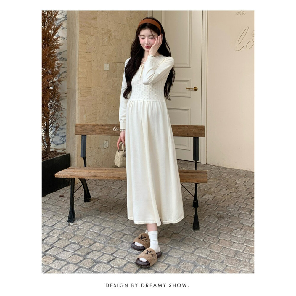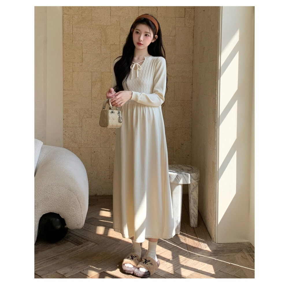 商品資訊/尺寸F/顏色.照片色/材質.針織 尺寸.F./裙長.118公分/胸圍.80公分/袖長.62公分/肩寬.35公分/ 商品會因不同批製作的因素,而有尺寸及顏色上些許落差,尺寸測量正負2公分為正常範圍內喔! 其他資料平放測量平面尺寸